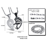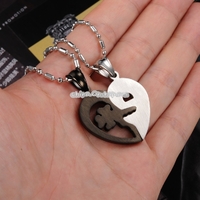 OPK 2 PCS Heart and Heart Black and White Puzzle Couple Necklace | x 1 | 3,380 dram |
