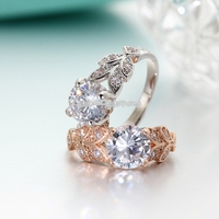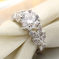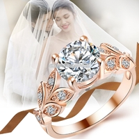 - Crystal Leaf Shape Cubic Zircon Ring for Women Jewelry