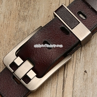 - Wide Needle Coffee Vintage Lacquered Genuine Leather Pin Buckle Waistband for Men