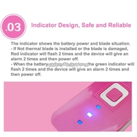 - If Not thermal blade is installed or the blade is damaged, Red indicator will flash 2 times and the device will give an alarm 2 times and then power off.