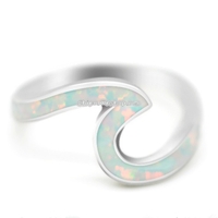 - Women Geometric Design Fire Opal Wave Rings