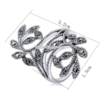 - Silver-Plated Tangled Flowers with Black Zircon Ring for Women