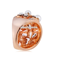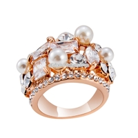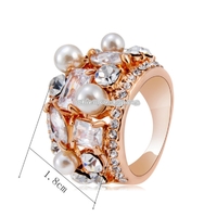 - Rose Gold Plated Zircon Crystal Imitation Pearl Rose Ring for Women