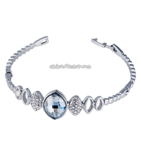 - Silver Plated Zircon Inset Egg Shaped Blue Crystal Ripple Buckle Bracelet