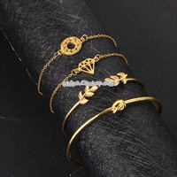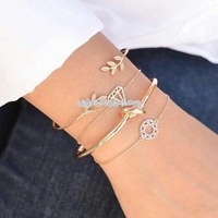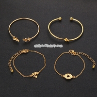 4 PCS /Set Women Fashion Bohemia Leaf Knot Hand Cuff Link Chain Charm Bracelet Bangle gold | x 1 | 1,910 dram |