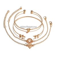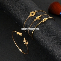 - 4 PCS /Set Women Fashion Bohemia Leaf Knot Hand Cuff Link Chain Charm Bracelet Bangle gold