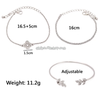 3 PCS/Set Retro Bracelets Silver Hollow Leaves Flowers Adjustable Chain Bracelet | x 1 | 2,150 dram |