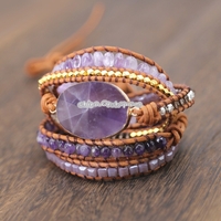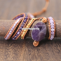- Women Handmade Boho Natural Amethyst Bracelet(Purple)