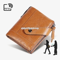 - TP-197 Oil Wax Leather Multi-functional Double Zipper Clasp Antimagnetic Change RFID Leather Wallet