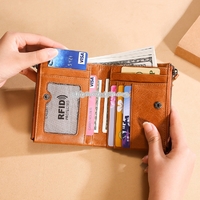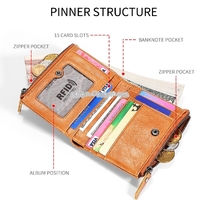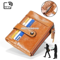 TP-8290 RFID Oil Wax Leather Zipper Change Purse Organ Card Holder