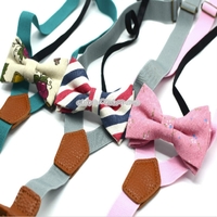 - Children British Style Solid Color Elastic Straps and Bow Tie Set
