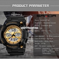 SANDA 766 Watch Sports Trend Outdoor Multi Functional Dual Display Time Watch Student Waterproof Electronic Watch Male | x 1 | 7,740 dram |