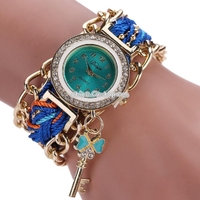 - Women Round Dial Diamond Braided Hand Strap Quartz Watch with Key Pendant