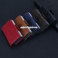 - X-7 Antimagnetic RFID Multi-functional Aluminum Crazy Horse Texture Leather Card Bag Wallet