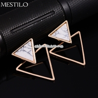 - Punk Geometric Marble Stud Earring Women Party Jewelry