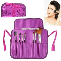- Foldable Manual Sequin Style Cosmetic Brush Case Bag Kit Set 7pcs Brushes Facial Care Product