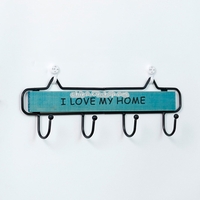 - Creative Solid Wood Wrought Iron Hook Pastoral Vintage Door Coat Key Small Hanging Rack, Colour