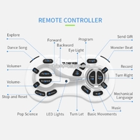 6. Function: front and rear, lighting control, programming, volume control, magic sound, music, dance music, stop/reset, food presentation, science, recording message, exploration, boot language, touch, standby, noise recognition, battery voltage, Voice dialogue, robot language