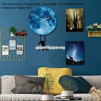 - B001-012 Elf Pattern Moon Style Home Living Room Decoration Acrylic Mute Wall Clock