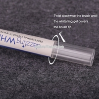4. rotating at the back of the whitening pen to squeeze the whitening gel onto brush head, the teeth whitening gel evenly apply on the mandibular teeth, daub thickness of about 1 mm (usually, whitening range for each 8-10 teeth up and down).Each treatment takes 20 minutes and lasts a week.