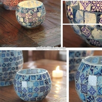 Mosaic Glass Candlestick Retro Ornaments Gift Bar Candle Cup Home Accessories(Blue And White Porcelain) | x 1 | 7,480 dram |