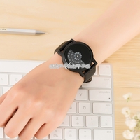 Classic Round Style Quartz Wrist Watch with Silicone Band (Black + Red)