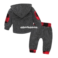 - Hoodies Toddler Plaid Hooded Tops Long Pants Kids Set