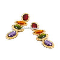 - Retro Metal Color Geometry Glass Diamond Earrings Jewelry