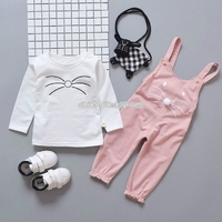 - Girls Cartoon Mouse Pattern Bib + Long Sleeve T-Shirt Set