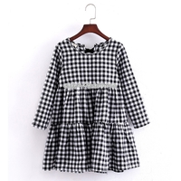 Autumn Girl Cotton Lattice Bow-knot Tie Long Sleeve Dress | x 1 | 8,600 dram |