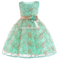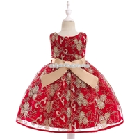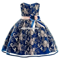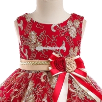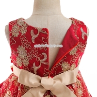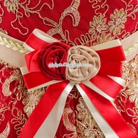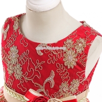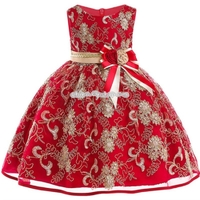 - Girls Gold Silk Embroidery Sleeveless Dress Wedding Dress