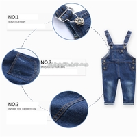 - Children Cotton Denim Copper Buckle Dungarees Suspender Trousers