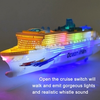 - Children Toy Simulation Electric Boat Model Music Light Cruise Wheel with Colorful Lights and Siren