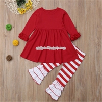 - Children Cotton Solid Color Pleated Top + Horizontal Striped Trouser Set