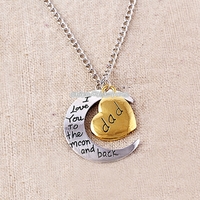 Half-Moon-Shaped Alloy Plated Pendant Necklace With Greetings Engraved At The Backside For Family, Diameter 3cm, Perimeter 9.4cm(Silver+Gold For dad) | x 1 | 1,600 dram |