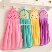 - 5 PCS Fruit Pattern Bathroom Kitchen Hanging Coral Fleece Absorbent Cloth Towels Random Color Delivery