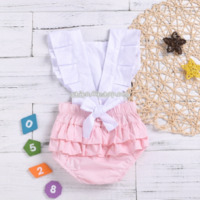- Summer Newborn Babies Ruffled Sleeves Back Straps Jumpsuit Romper