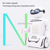 4.Product Function: shining eyes, rolling money automatically, music broadcasting, revisability code, coin storage, sliding robot, desk lamp, mobilizable arm.