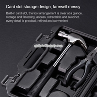 6. Internal configuration: lamb horn hammer, 8-inch movable wrench, multi-purpose connecting rod, 7-10mm socket, 3M tape measure, part box, 5PCS inner hexagon wrench, wire pliers, 10PCS batch head, digital display pen, 3mm screwdriver one-word cross, art knife, electrical rubber cloth