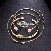 - 4 in 1 Classic Arrow Knot Round Crystal Gem Multilayer Adjustable Open Bracelet