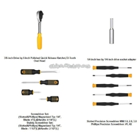 3. One handle,one extendable bar and 30 screwdriver bits (Hexagon M1.5, M2.0, M2.5, M3.0, M3.5, M4.0; PH000, PH00, PH0, PH1, PH2; Star 0.8mm, 1.2mm, 2.0mm; Flat 1.5mm, 2.0mm, 2.5mm, 3.0mm, 4.0mm; Y2.0mm, Y3.0mm; T4, T5, T6, T8, T9, T10; Triangle 2.0mm, 3.0mm; U2.3)