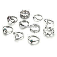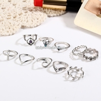 - 10 PCS/Set Bohemia Vintage Crystal Openwork V-shaped Flower Ring Set