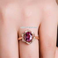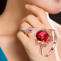 - Fashion Red Tourmaline Rose Gold Flower Shape Women Ring