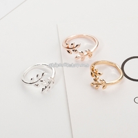 - Charms Tolive Tree Branch Leaves Adjustable Open Ring for Women