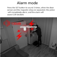 10. 5 modes of alarm/doorbell(alarm 30 seconds mode, doorbell mode, alarm mode, beep mode and delayed alarm mode), can be installed in both directions, 130dB super loud alarm sound