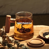 Thick Heat-resistant High Borosilicate Glass Teacup with Wooden Handle, Capacity: 300ML | x 1 | 10,500 dram |