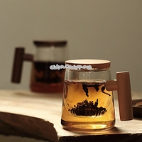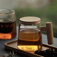 - Thick Heat-resistant High Borosilicate Glass Teacup with Wooden Handle, Capacity: 300ML