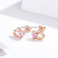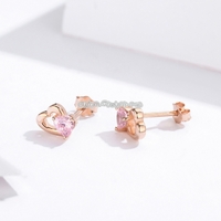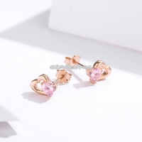- Sterling Silver Earrings Heart-shaped Rose Gold-plated Zircon Earrings