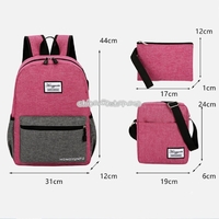 3 in 1 Color Matching Nylon Double Shoulders Bag Ladies Handbag School Backpack Bag with USB Port (Color:Black Size:OneSize) | x 1 | 12,170 dram |