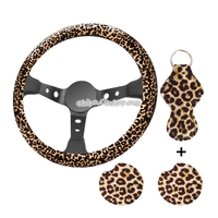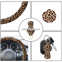 - 4 in 1 Universal Car Leopard Steering Wheel Cover + Keychain Cover
